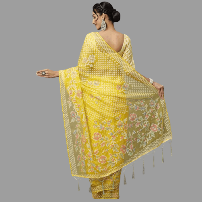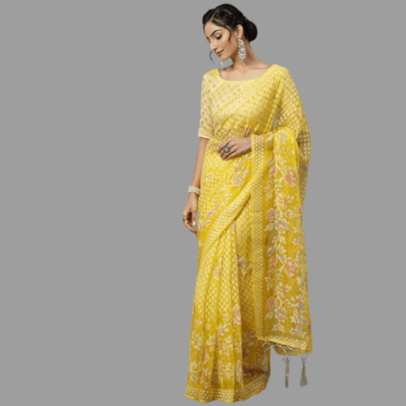 Saree Color :- Yellow || Blouse Color :- Yellow