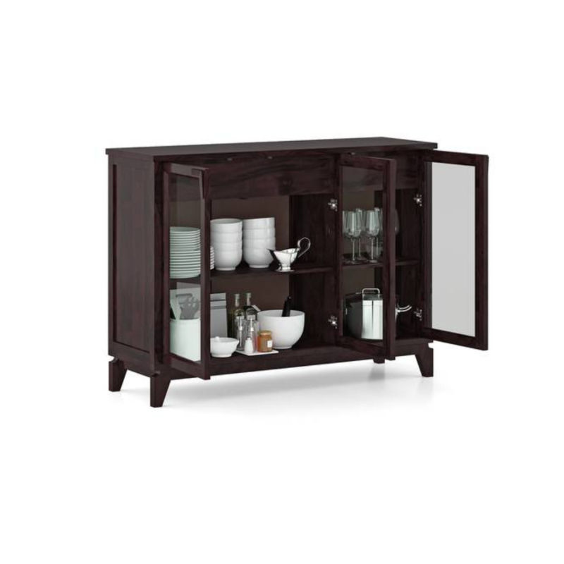 • You call it a cabinet, we call it the perfect display. The Akira features a sleek glass front, held together by warm sheesham wood. The perfect home for your museum-worthy china, it also doubles as a serving station.