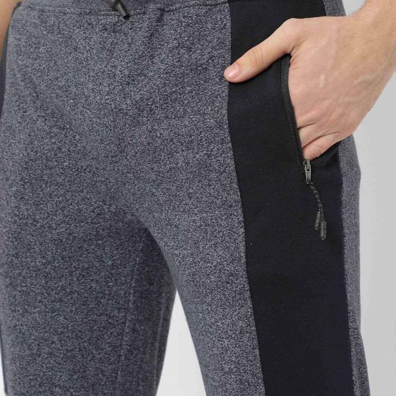 بنطال رياضي رمادي متزجج صلب، حزام خصر مطاطي مع رباط تضييق للإغلاق، 2 جيوب.