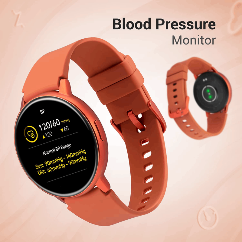 • [Complete Health Suite] With Blood Pressure Monitor, 24 X7 Heart rate monitor, SPO2 (Blood Oxygen Level) Tracker and Women's Health tracker.;[Sleep Monitoring] Let the watch keep a check on your sleep health with an active sleep monitor.