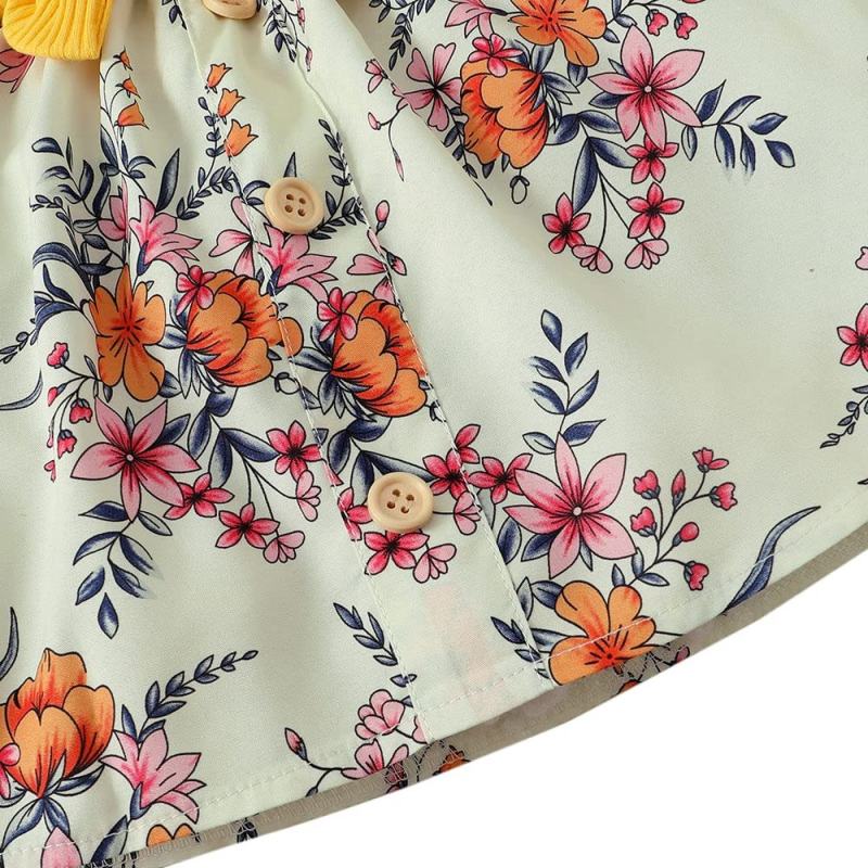 Hopscotch Girls Cotton Floral Print Onesie & Skirt Set with Headband in Yellow Color