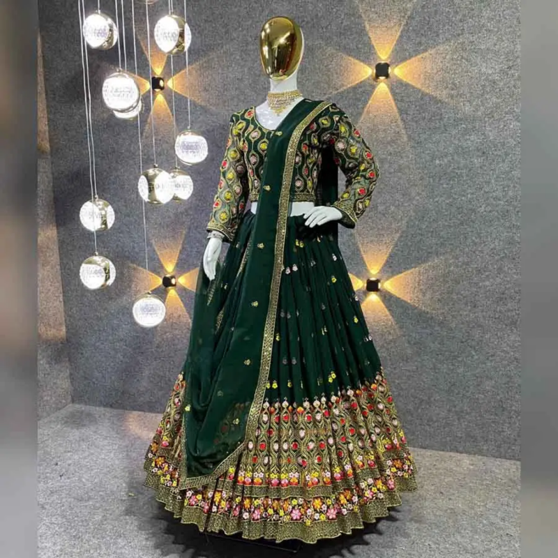 The 3D design adds a layer of depth and intricacy, creating an eye-catching visual effect that beautifully complements the vibrant colour palette. The dupatta, a traditional scarf, is an elegant addition to this ensemble and enhances comfort and style. The Designer Net 3D Work Lehenga Choli with Dupatta in Green is perfect for various occasions such as parties, weddings, and celebrations. Its lightweight and breathable fabric ensures that you can fully enjoy the festivities without feeling weighed down. The soft net material offers comfortable wear, even during prolonged use. The lehenga is designed to flatter all body types, providing a stylish and flattering silhouette that is both elegant and practical.