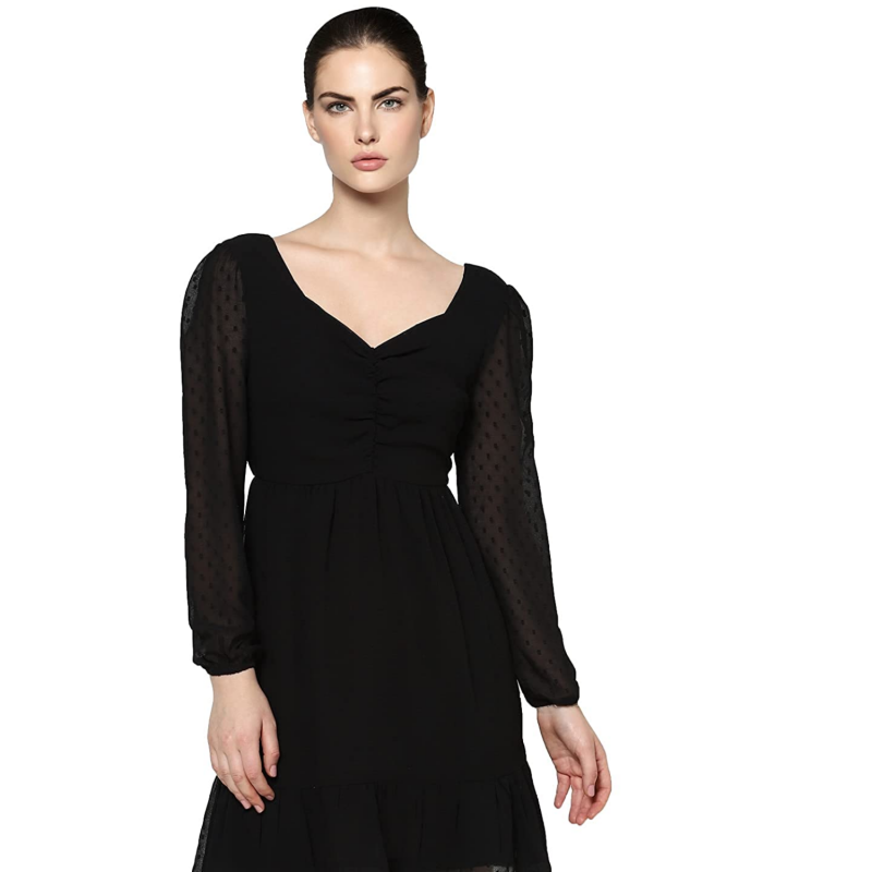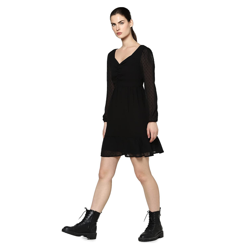ONLY Women's Polyester Fit and Flare Above The Knee Casual Dress